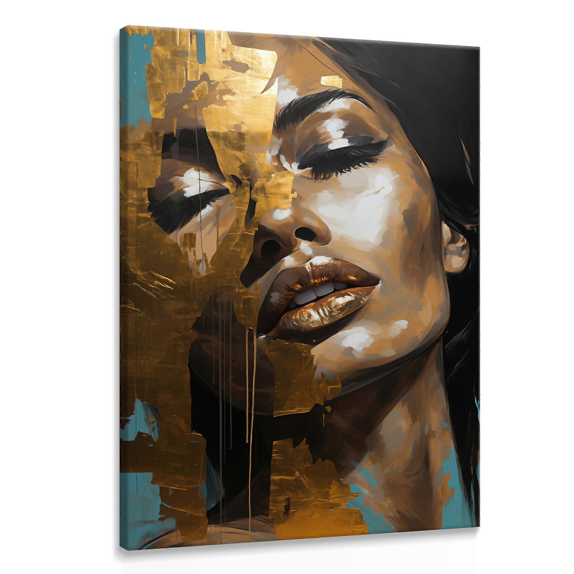 Obraz Na Ścianę Nowoczesny Portret Kobiety Styl Glamour Złote Usta