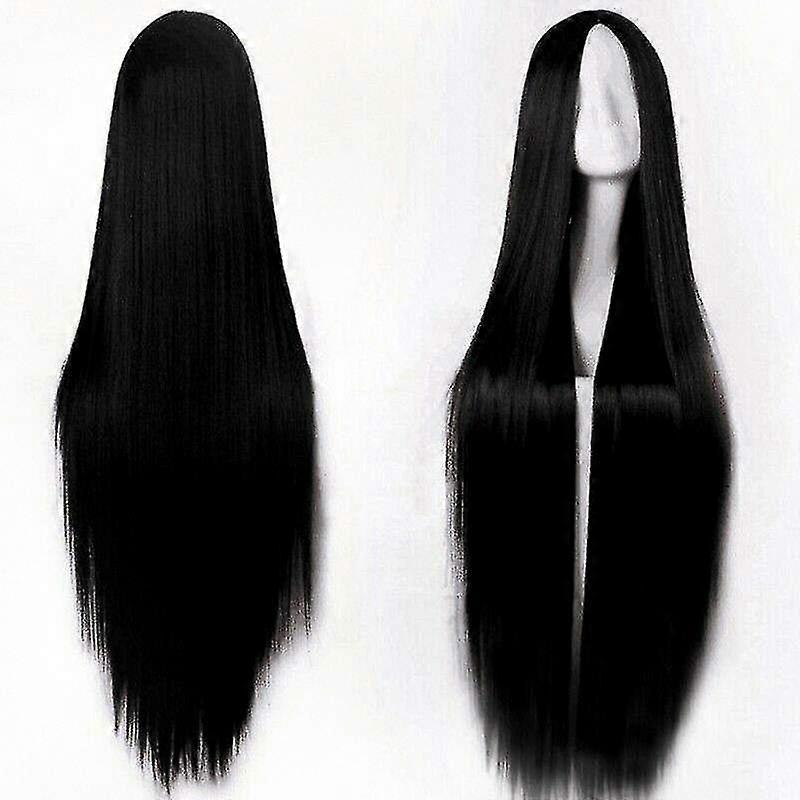 Long Heat Resistant Straight Synthetic Front Wig for Women in Black