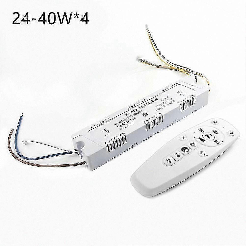 : Power: (20–40W) × 4, (40–60W) × 4 Input: AC 170–245V, 50/60 Hz Output: DC 60–130V; DC 120–200V, 240 mA Control: 2.4 GHz RF remote and mobile app Control range: Up to 30 meters Package includes: 1 LED driver, 1 remote control Note: 1. The actual product color may vary slightly from images due to monitor settings and lighting conditions. 2. Slight measurement variations may occur due to manual measurement.