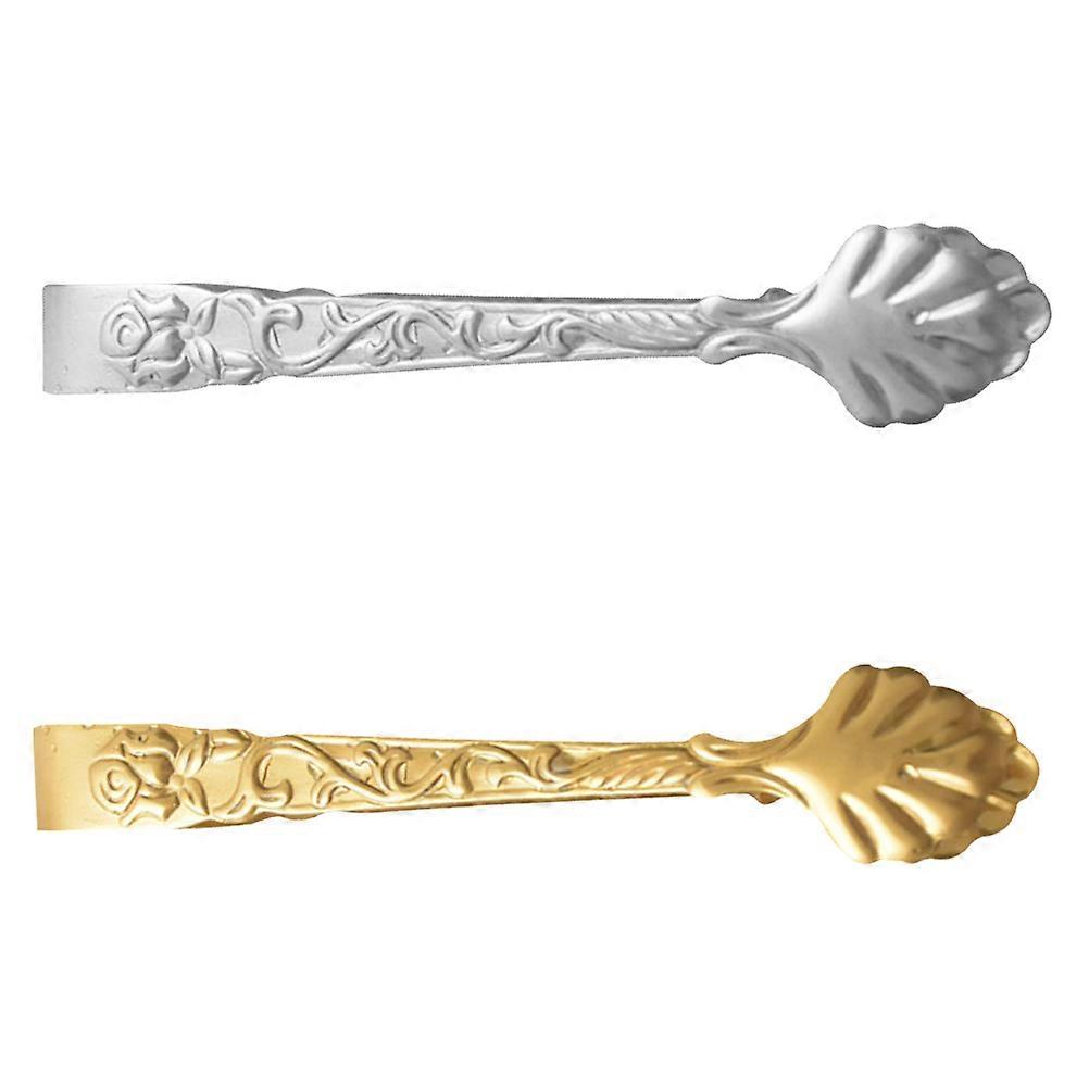 Small Kitchen Tongs Stainless Steel Ice Cube Clips Food Handling Tools Golden 2Pcs