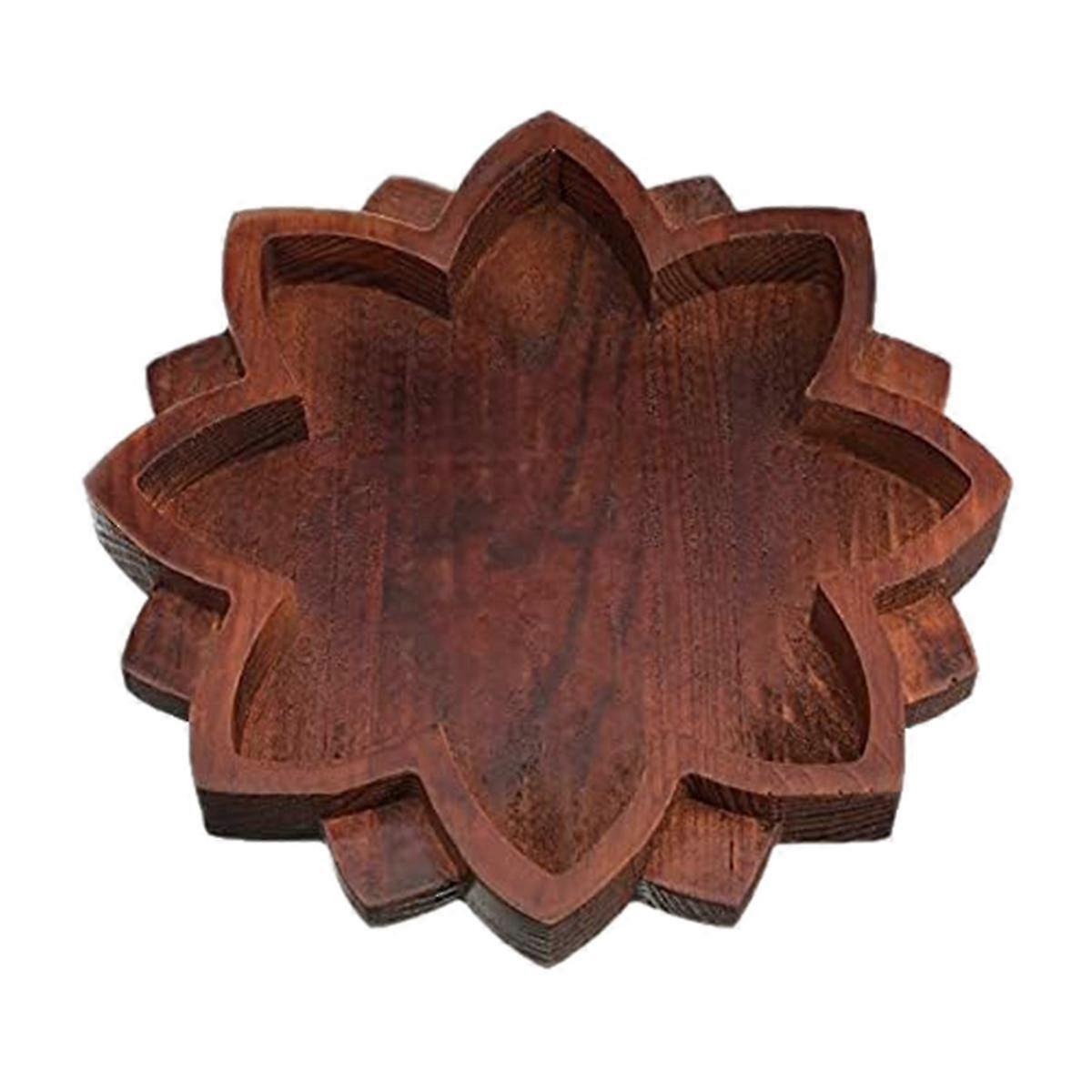 Lotus Shape Wooden Crystal Tray - Retro Jewelry & Essential Oil Storage Display Tray