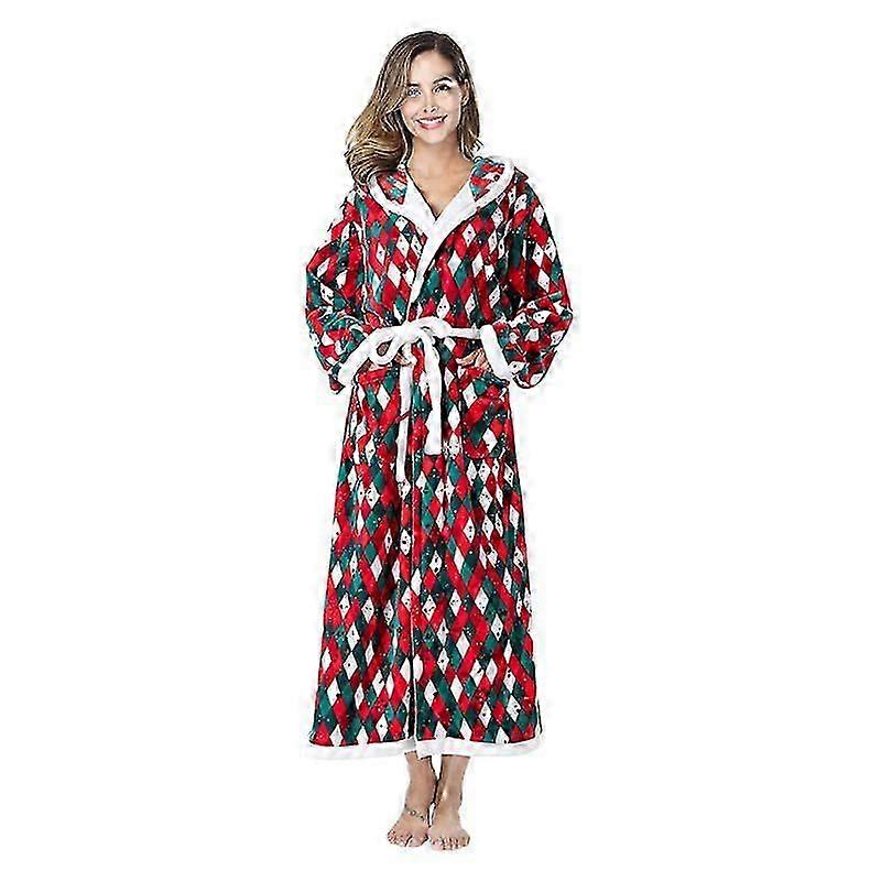 Luxury Plaid Christmas Bathrobe Women's Hooded Robe Soft Flannel Pajamas Homewear