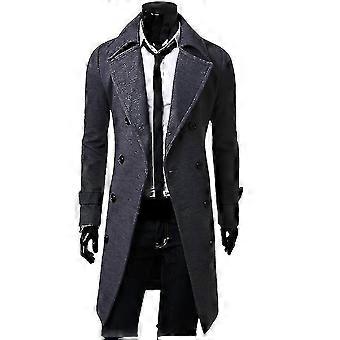 Mænd frakke vinter varm solid lang trenchjakke breasted business casual overfrakke mandlig frakke