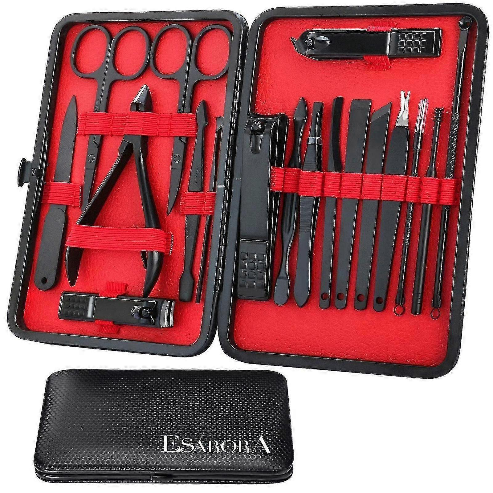Manicure Set, 18 in 1 Stainless Steel Professional Pedicure Kit Nail Scissors Grooming Kit with Black Leather Travel Case