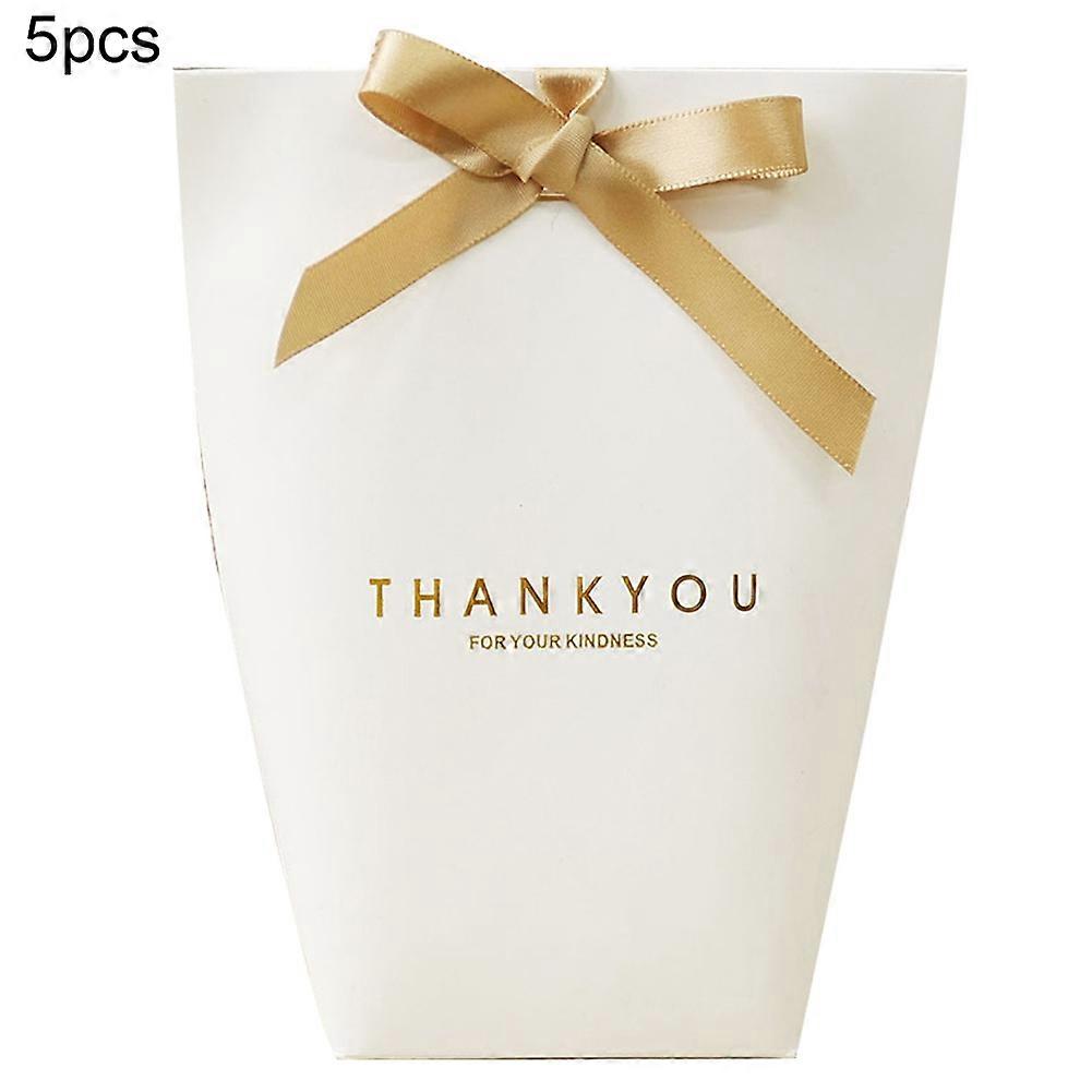 MengXi 5Pcs Folding Paper Bags Ribbon Box Thank You Wedding Party Gift Sweets Holder