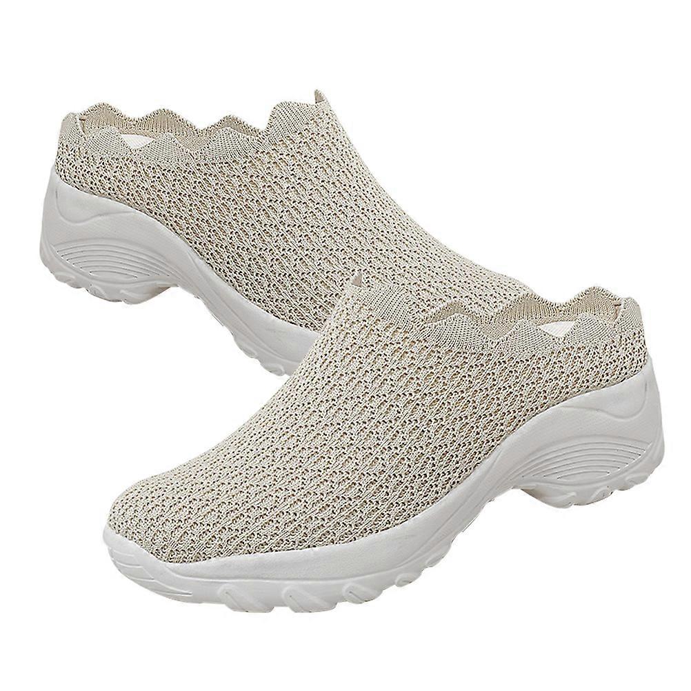 Mesh Shoe Thick Sole Leisure Shoes Women Beige Pu Material Supply Grip Function 1 Pair