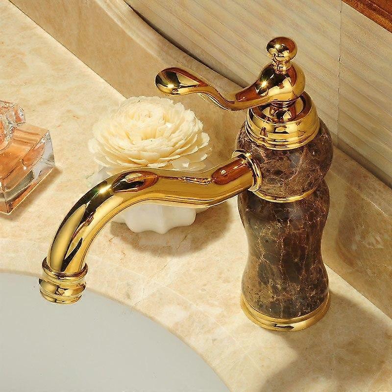 Brass Hot and Cold Mixer Gold Ceramic Decoration Jade Bathroom Faucet Mixer Single Hole Sink Basin Faucet