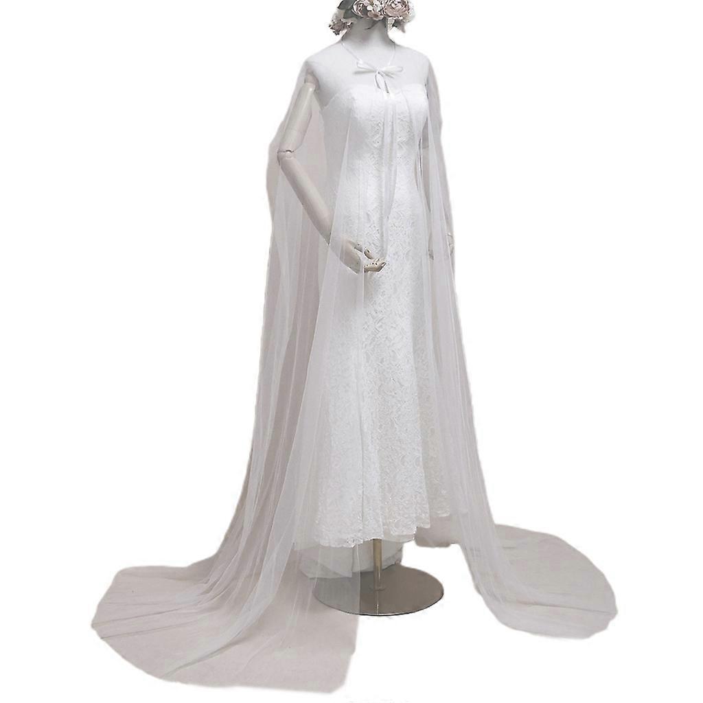 Minimalist Women Tulle Mesh Wedding Long Cape Floor Cathedral Length White Bridal Wrap for Jacket Evening Party Sheer Shawl Cloak
