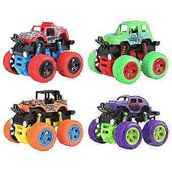 Monstertrucks, 4 Pack Push and Go Friktionsdrevne biler Køretøjer Legetøj, 360 roterende stuntbil