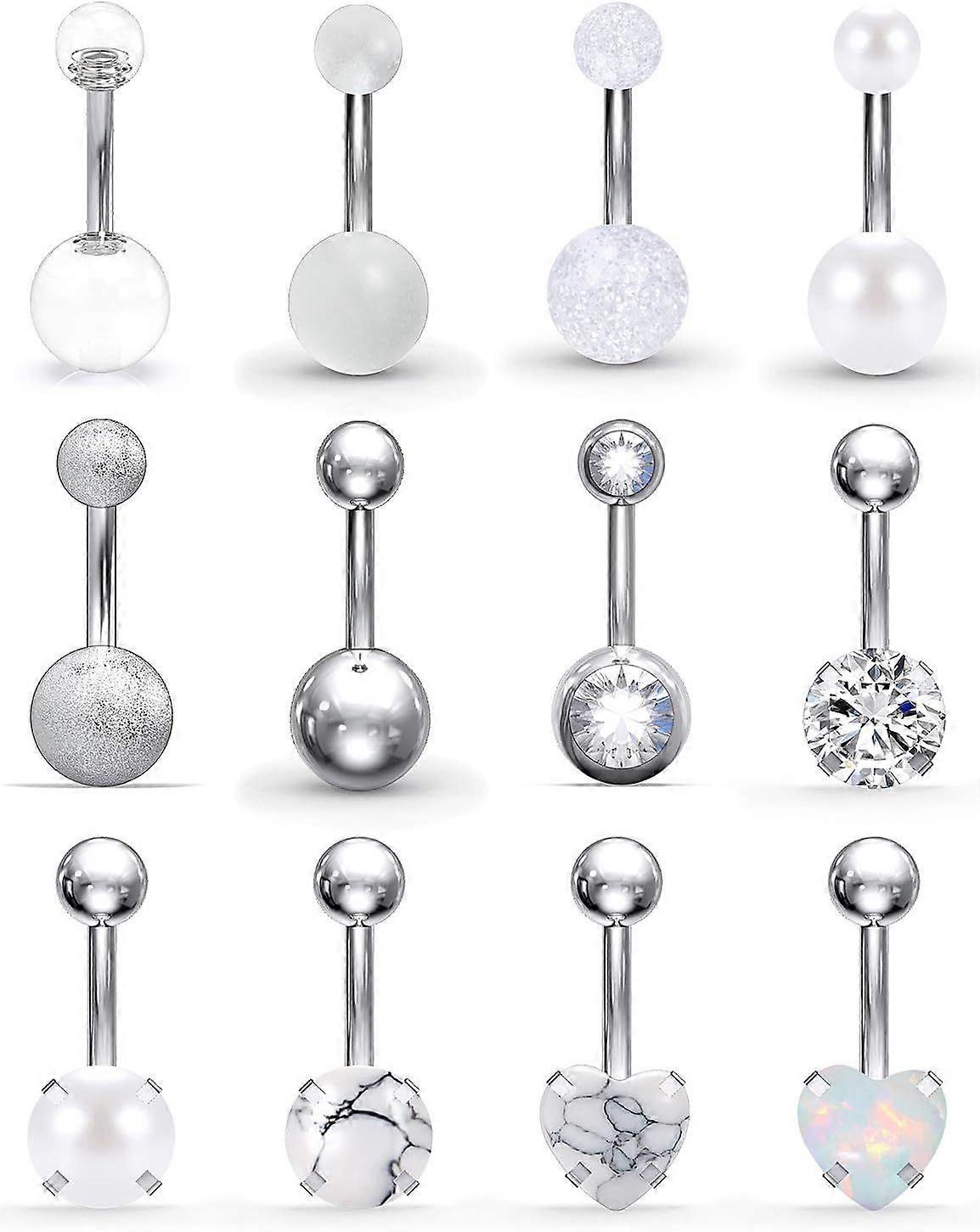 Belly Button Rings 14G Stainless Steel Navel Belly Earring Heart Opal Navel Ring