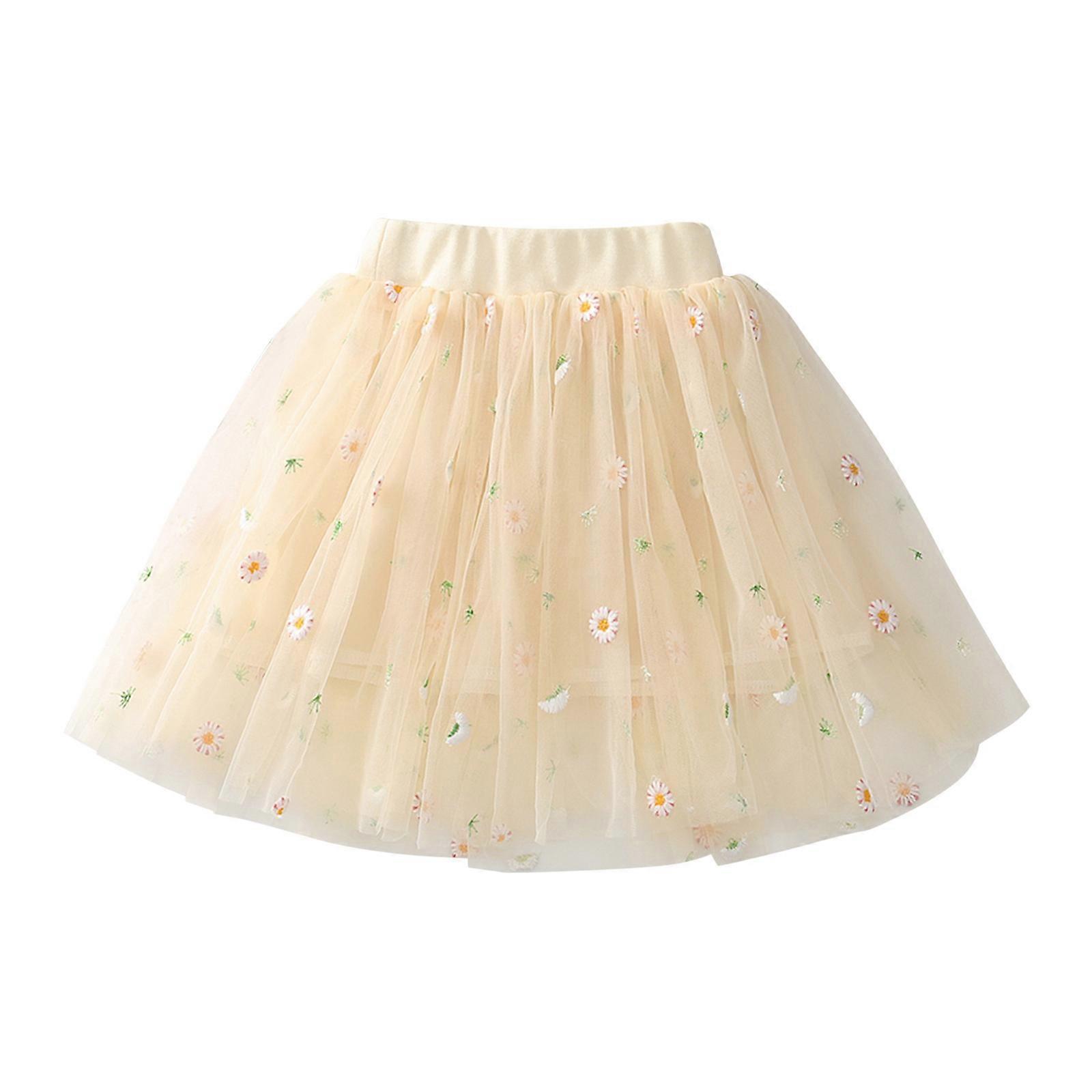 Skirts For Women Plus Size Toddler Girls Cute Party Dance Costume Solid Color Net Yarn Crimping Daisy Embroidery Tulle Skirt