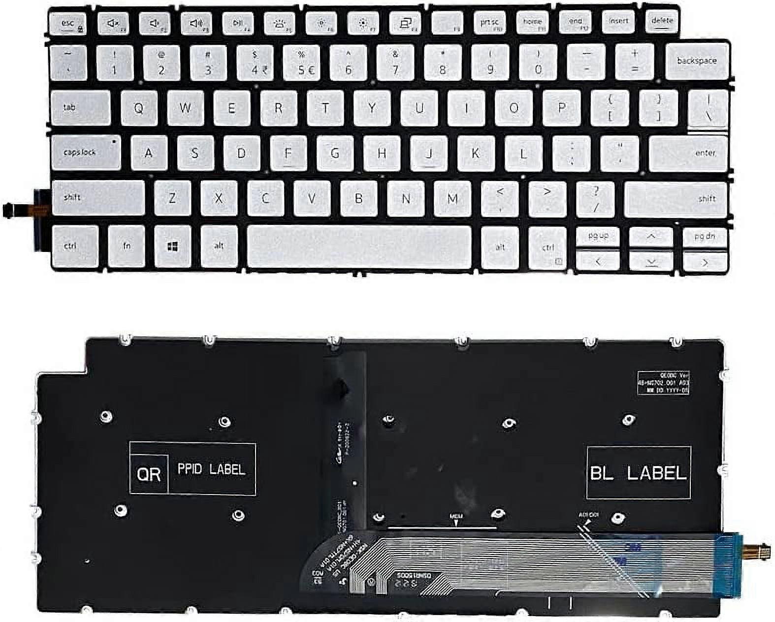 New US Silver English Backlit Laptop Keyboard (Without palmrest) for compatible with Dell Inspiron 7300 2-in-1 Light Backlight