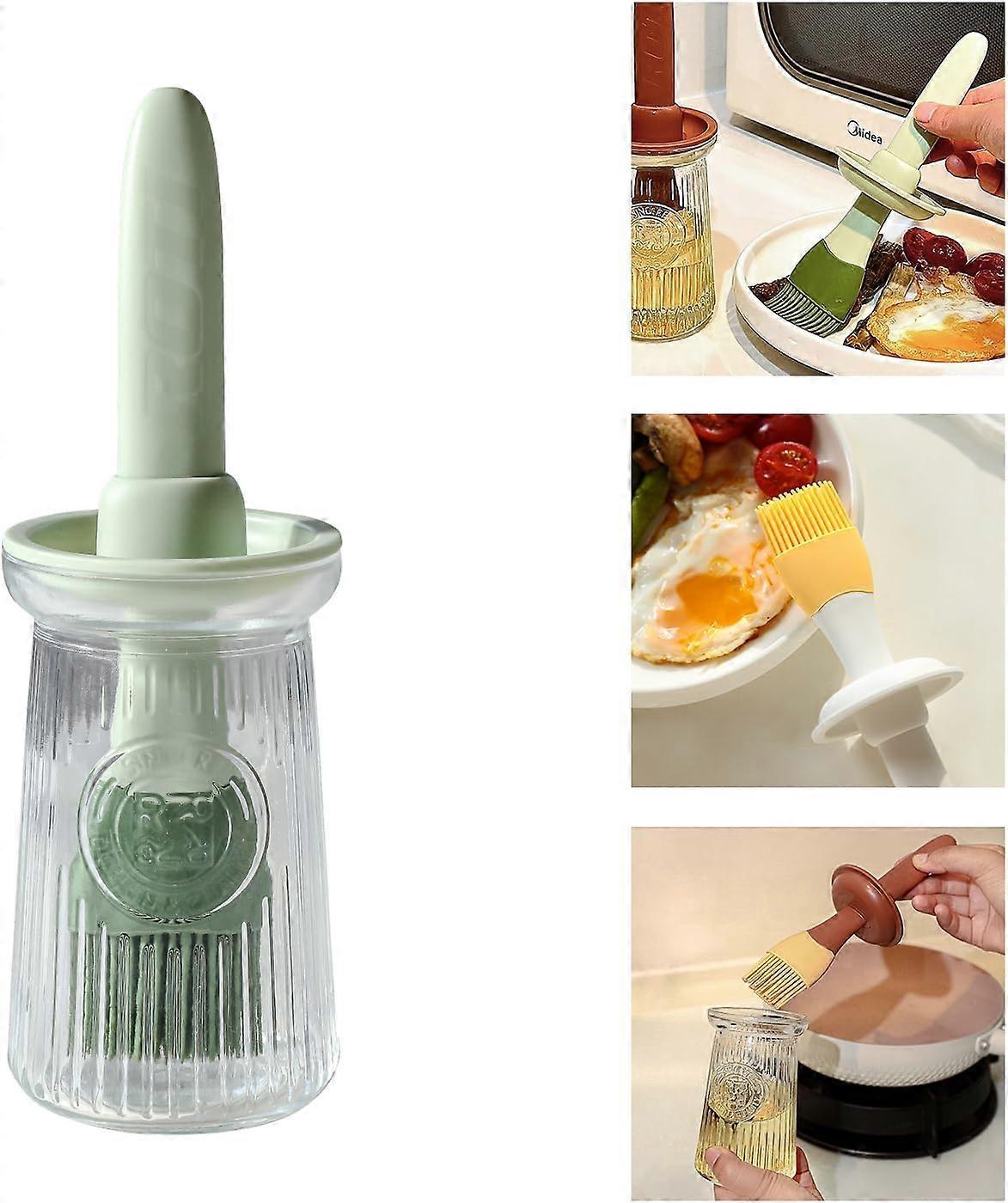 Oil Dispenser with Brush Glass Olive Oil Dispenser for Kitchen, 3 IN 1 Oil Dispenser Bottle Chatter Green
