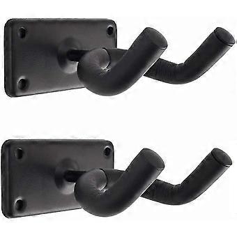 Black Metal Guitar Wall Hooks, Set of 2 Brackets for Guitars and Banjos