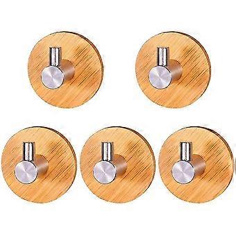 Bambus rustfrit stål kroge, anti-korrosion dobbelt krogbøjle selvklæbende, pladsbesparende til badeværelser og køkkener (5-pak)--