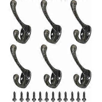 Vintage knager 6-pak, retro metal vægkroge, bronze skrue hattestativ, tøjbøjle, dekorativ knagerække, one size