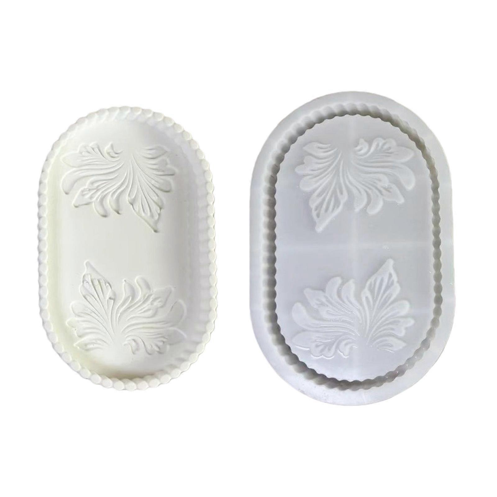Oval Shape Storage Tray Silicone Mold with Flower Pattern Handmade Concrete Tray Casting Mould For Desktop Shelf Decors Multicolor