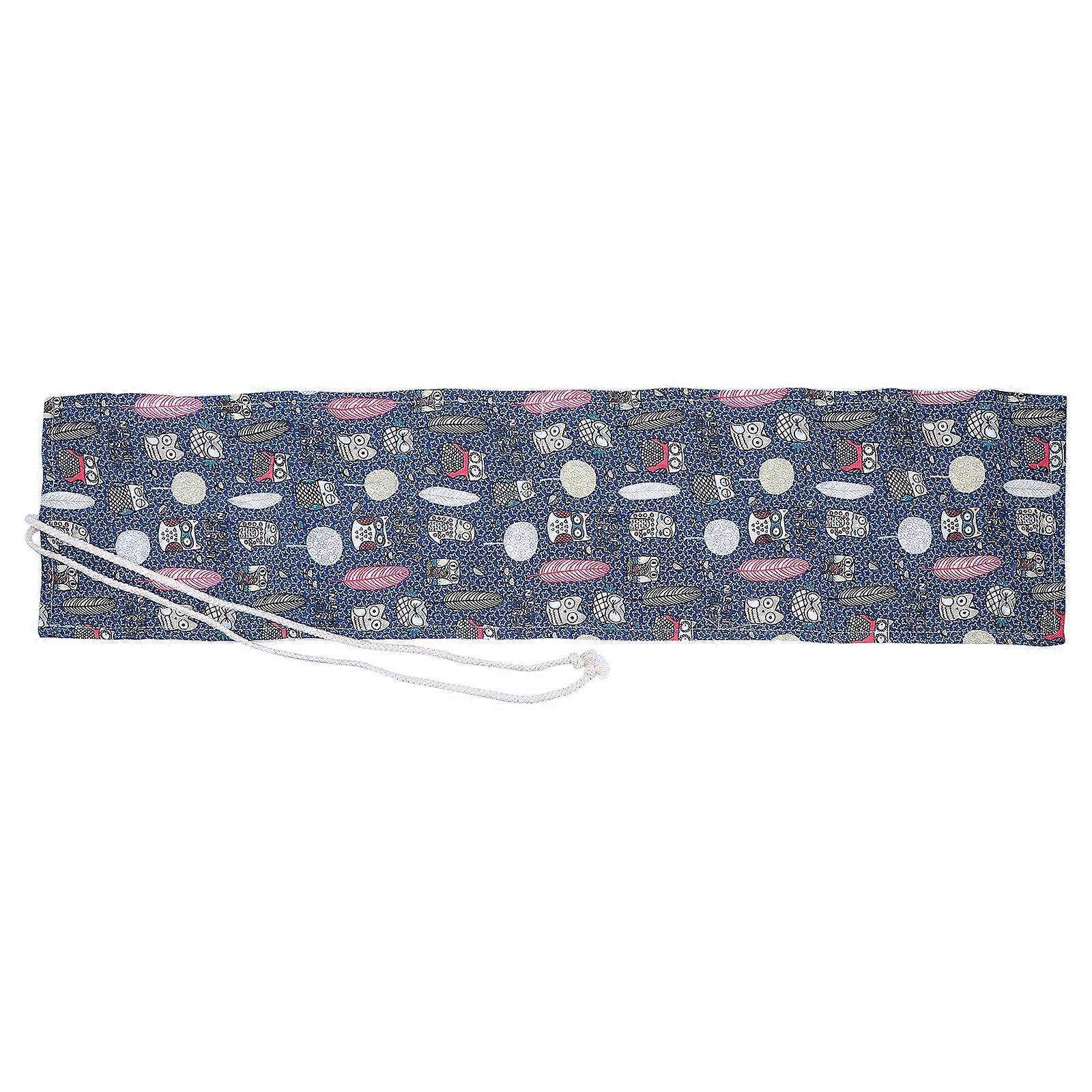 Owl Pattern Handmade Canvas Pencil Holder with Durable Rolling Organizer Pouch for Students – Lightweight and Portable Design for Easy Storage
