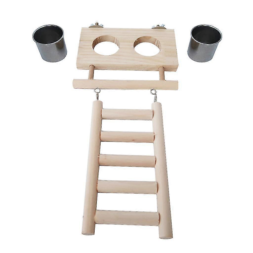 Parrot Feeding Cups With Clamp Holder Wood Platform Ladder Toy For Cage