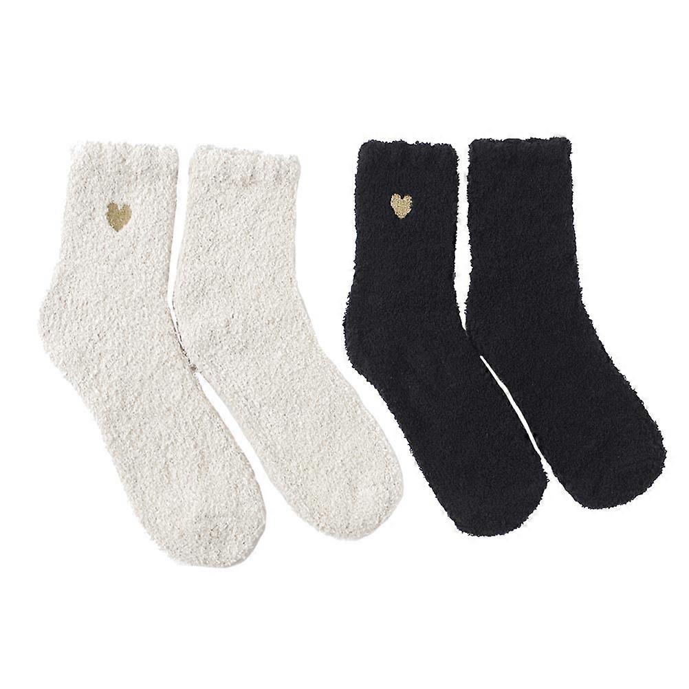 Couple Tube Socks Acetate Fiber Material for Autumn Winter Keep Warm and Breathable 2 Pairs Black and White