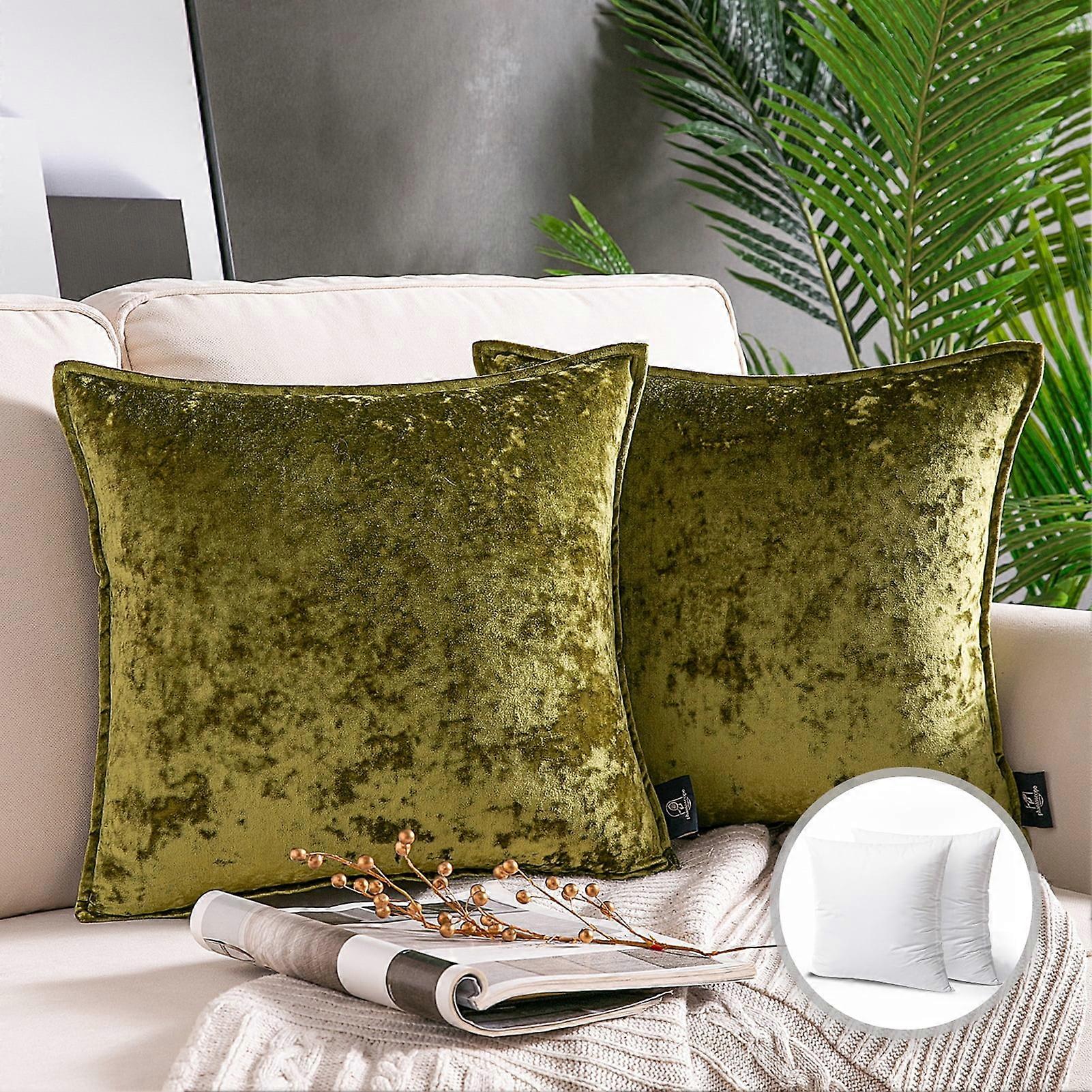 Phantoscope Patterned Velvet Tailored Edge Decorative Throw Pillow, 20" x 20", Light Green, 2 Pack
