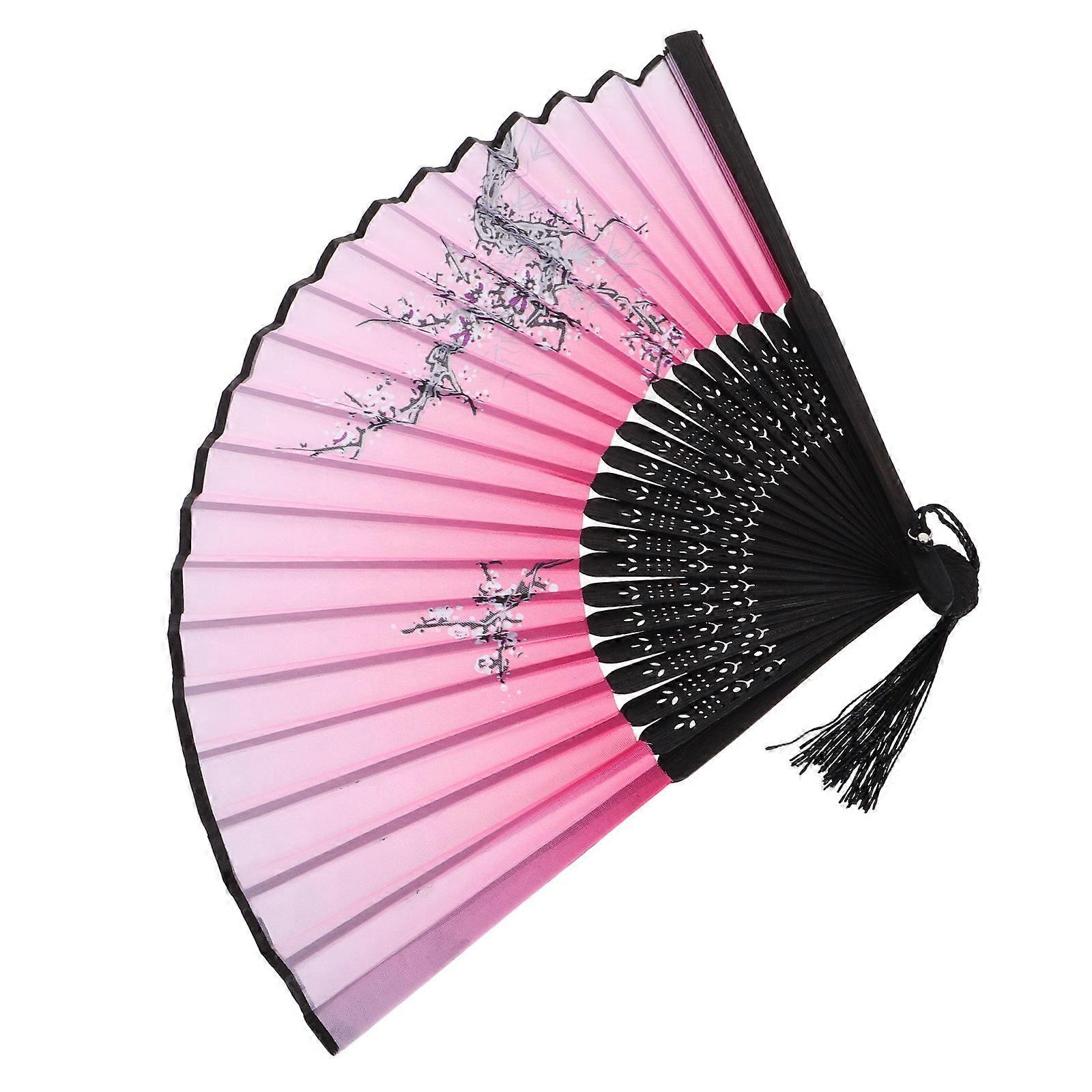 Pink Japanese Style Handheld Fan for Cooling 2Pcs with Silk Surface and Pouch