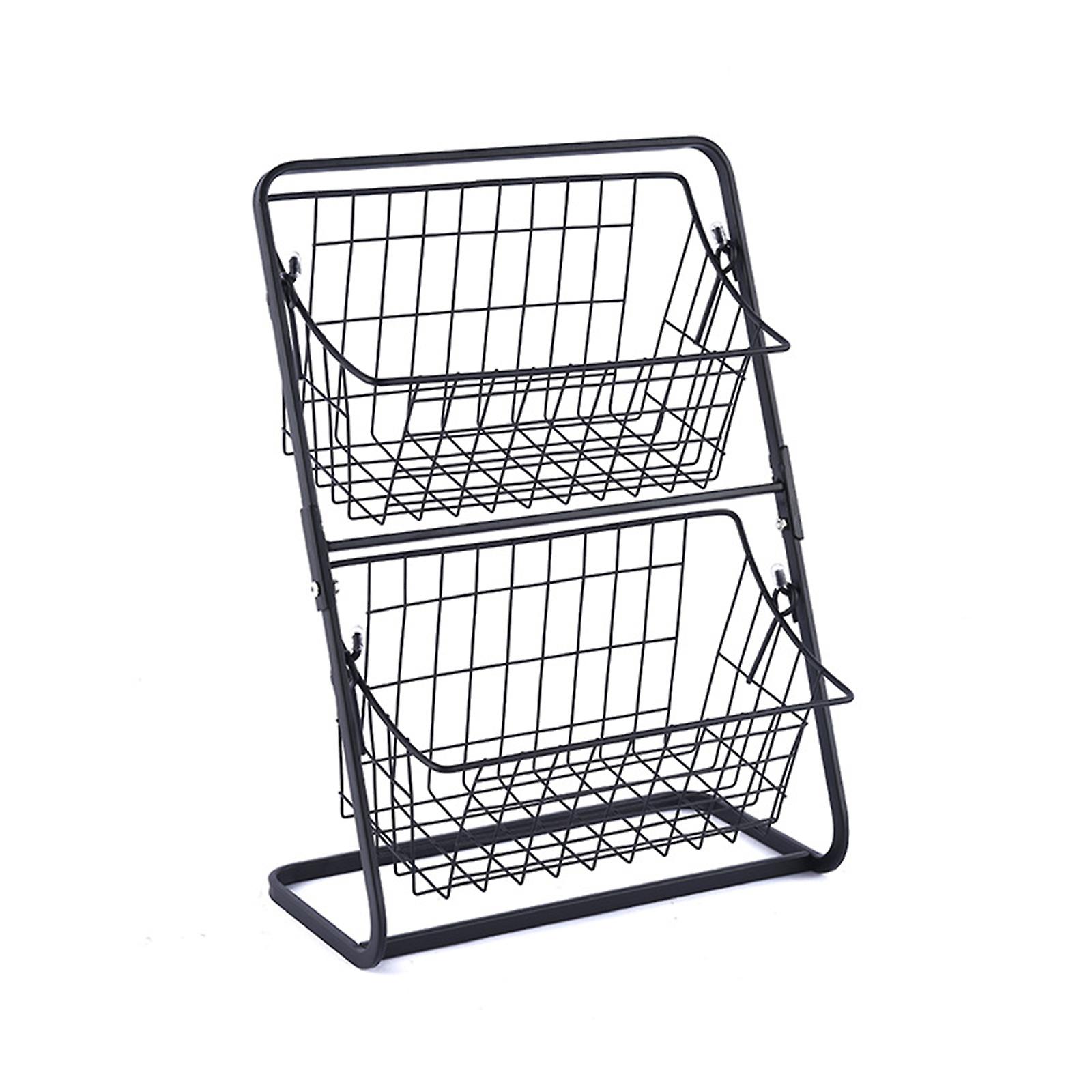 Space-Saving Black 2-Tier Kitchen Basket for Fruits, Veggies, and Spices