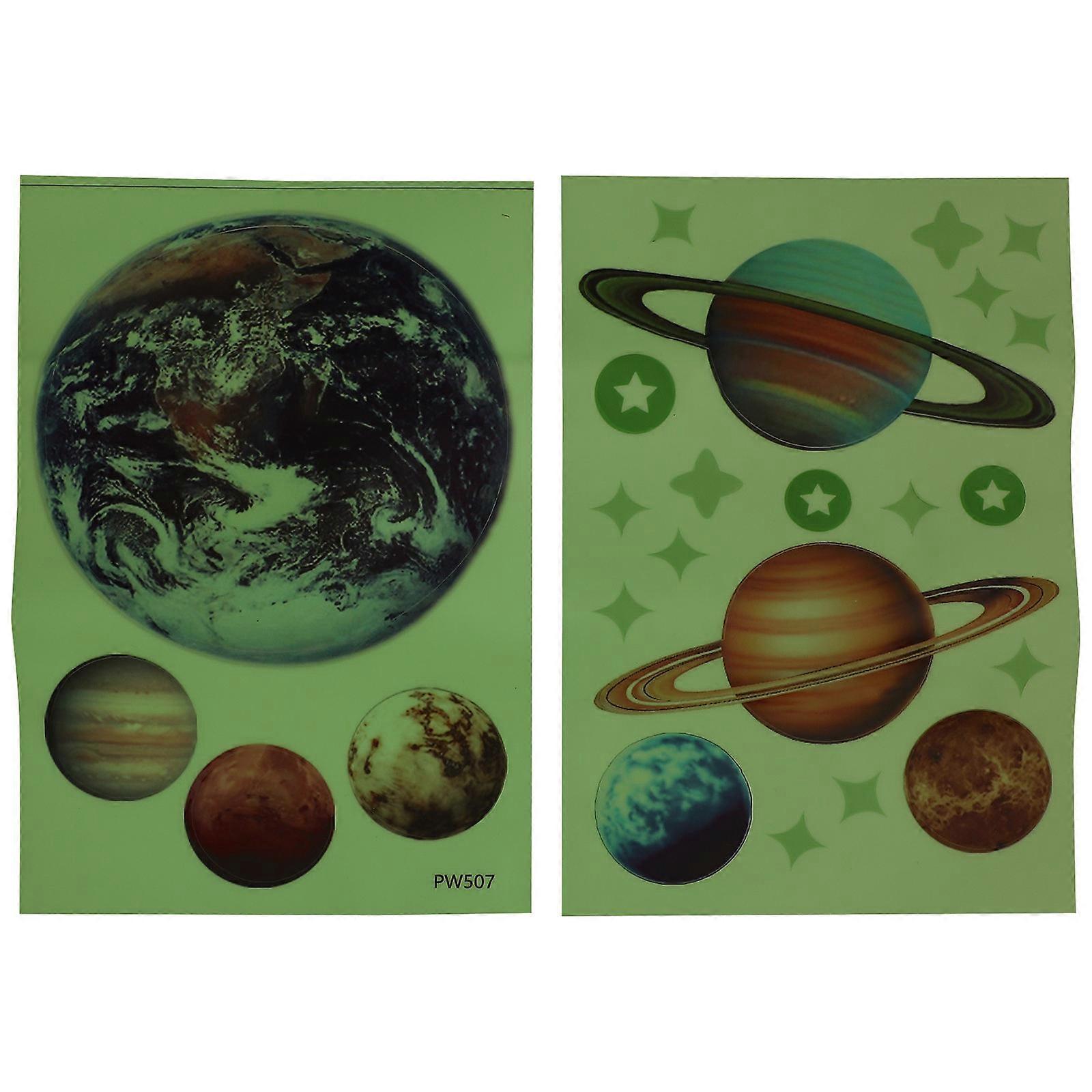 Planet Shape Glow In The Dark Wall Decals For Nurseries And Playrooms 18X27Cm PVC Material 2 Sheets
