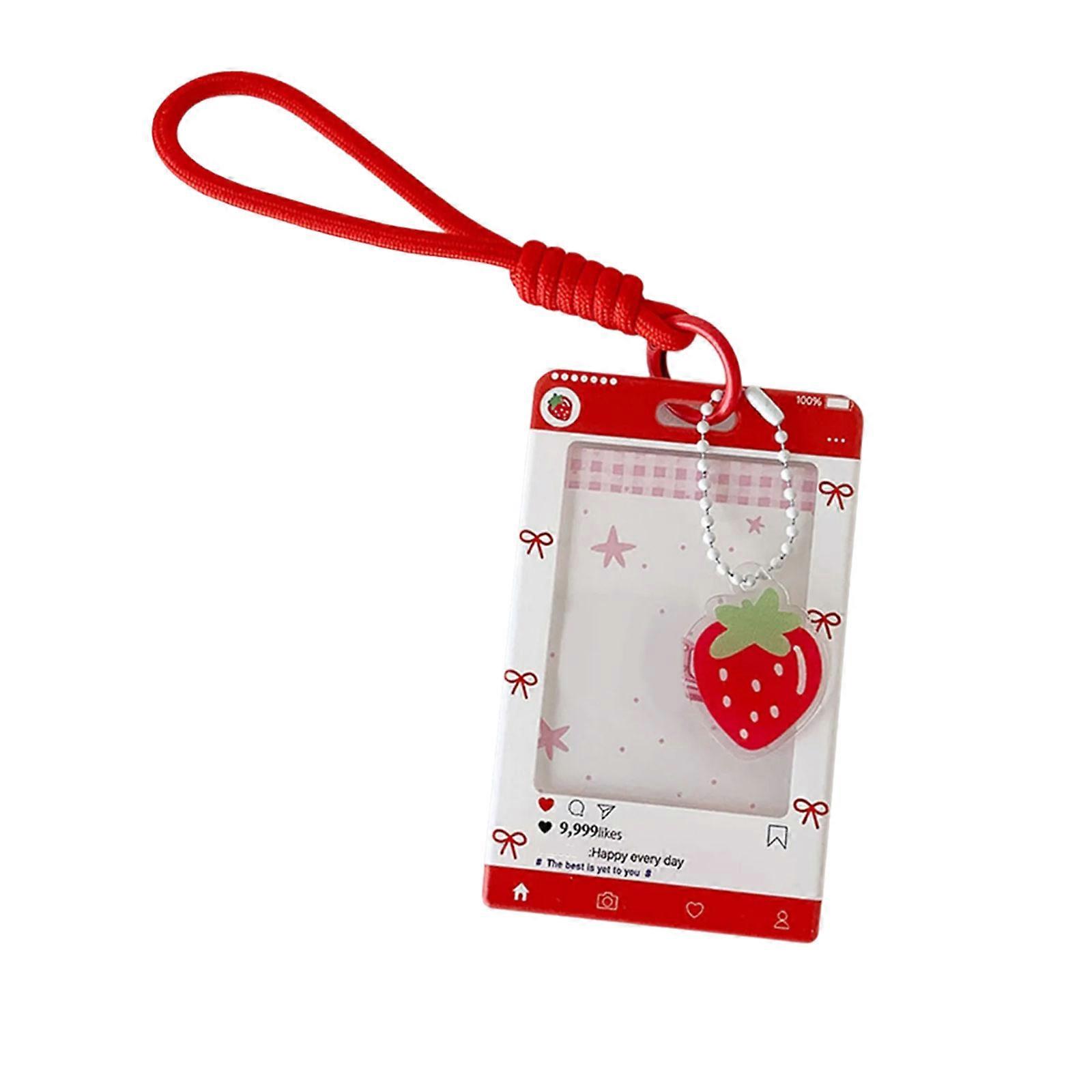 Plastic Transparent Card Case For Student Campus Pass 3 Inch Dimension Attached Keychain Loop Travel Friendly Red