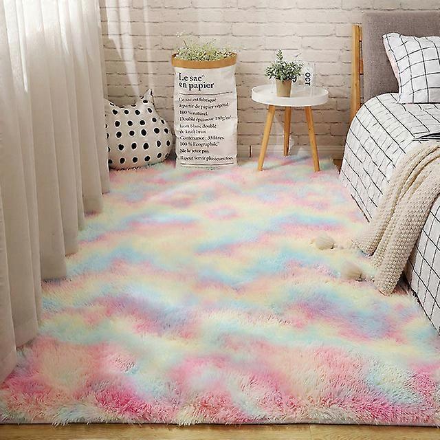 Plush Carpet For Living Room Bedroom Decoration Thick Fluffy Rug Anti-slip Floor Soft Rugs Green Tie Dying Mats Room Carpets