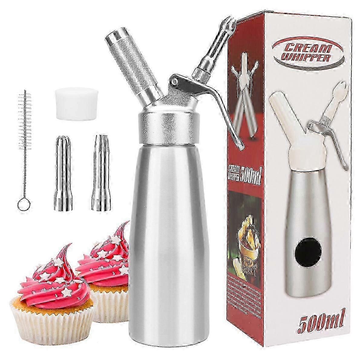 Professional Cream Dispenser, Stainless Steel Siphon 500 Ml, 3 Nozzles