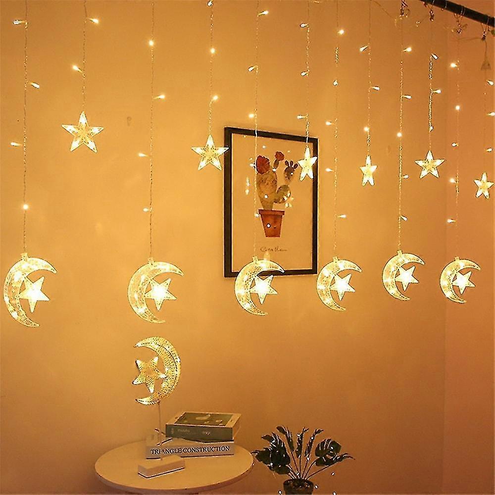 Ramadan Eid Lights 8.2ft Star Window Curtain Lights 12 Stars 138 LED 12 Drop Fairy String Lights wit