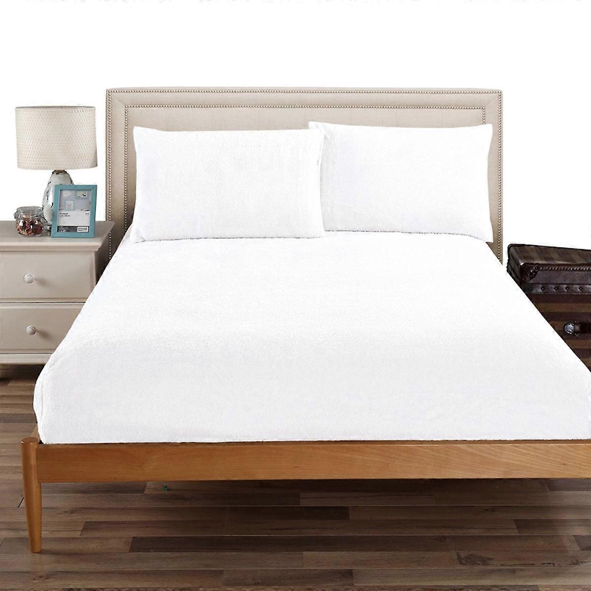 Ramesses Teddy Fleece Fitted Sheet Combo Set White Double Sheets