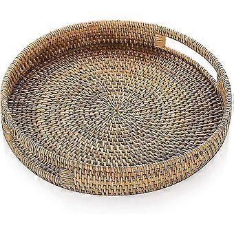 Rattan serveringsbakke med håndtag 30cm håndvævede kurvebakker Rottingbakke Rustik dekorativ bakke