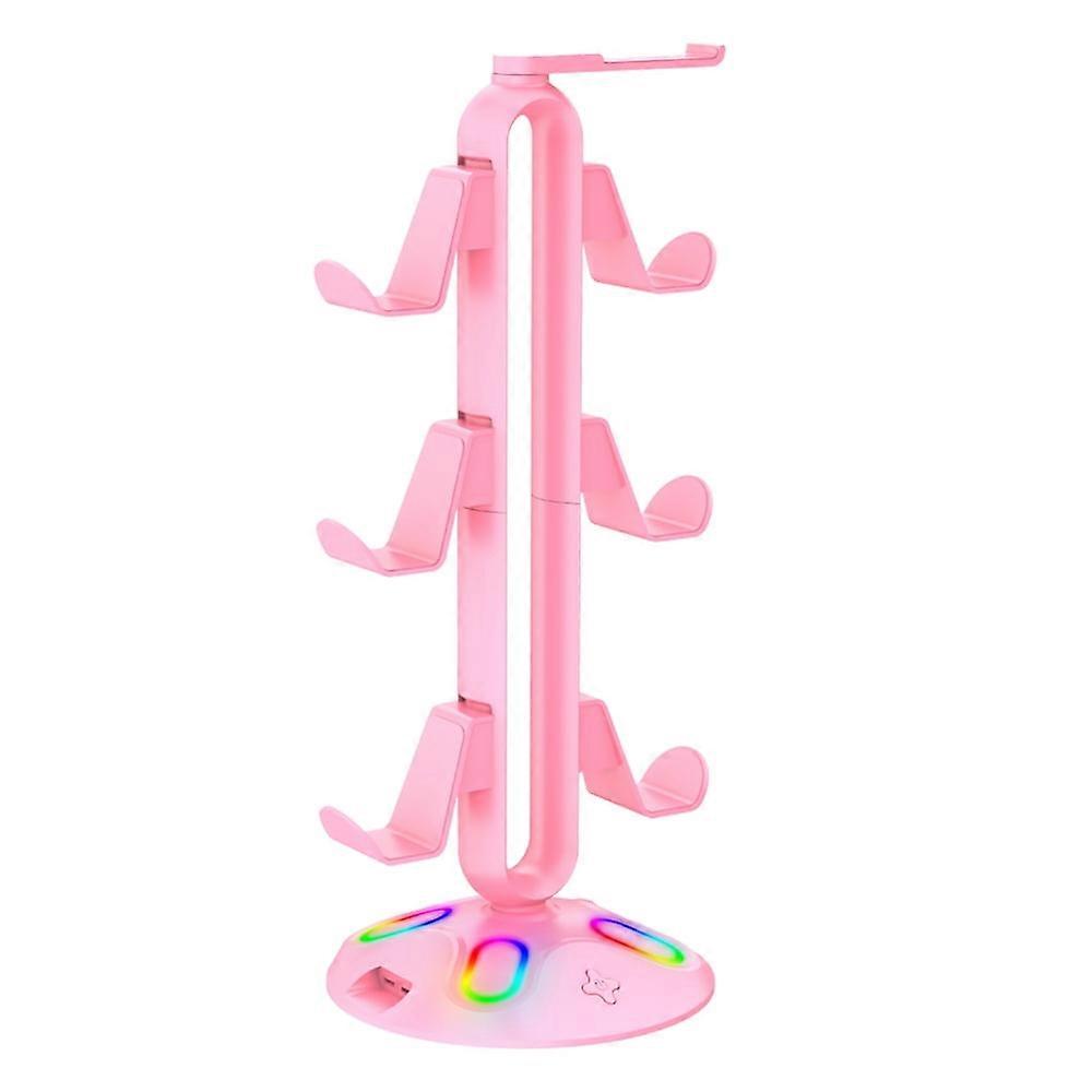 Specification: Origin: Mainland China Suitable For: Various Types Of Game Controllers And Headsets Color: Black/White/Pink (Optional) Material: ABS Working Voltage: 4.75V-5.2V Working Current: 110mA-500mA Interface: USB2.0*2 (Data Reading, Charging, Keyboard And Mouse Available), 3.5mm*1 (Headphones Available), Type-C*1 (Data Reading, Charging), Handle Hook*6, Headphone Hook*1 Product Weight: 600g Product Size: 380.00x155.00x155.00mm/14.96x6.1x6.1inch Note: Due to the different monitor and light effect, the actual color of the item might be slightly different from the color showed on the pictures. Thank you! Please allow 1-2cm measuring deviation due to manual measurement. Included: 1*Gaming Headphone Stand 1.Vibrant RGB Lighting: Illuminate your gaming setup with the gaming headphone stand's RGB base, featuring touch-activated lighting modes. Long-press for 3 seconds to power on and cycle through various lighting effects, including rainbow breathing, chasing lights, and solid hues like red, green, blue, purple, cyan, yellow, and white, adding a dynamic flair to your gaming environment. 2.Broad Compatibility: Seamlessly integrate the RGB game controller holder with your system, thanks to its support for a wide range of operating systems including Win7/8/10/11, Linux, and Mac. This ensures that no matter your platform, your gaming setup will be enhanced with both functionality and style. 3.Versatile USB Hub: Expand your connectivity with the detachable HUB base of this game headset stand, equipped with multiple USB ports for your gaming peripherals. The anti-slip protective pads ensure stability and security for your devices, making it a central hub for all your gaming needs while keeping your space organized. 4.360° Headphone Hook: Experience convenience with a twist, using the 360-degree rotatable controller stand hanger. This feature allows you to store your headphones in any direction, providing easy access and a tidy gaming area, ensuring your focus remains on the game. 5.Sturdy & Easy Setup: Rest assured with a strong build capable of holding up to 5KG, accommodating even the heaviest of controllers. The installation process of this game controller headset bracket is a breeze, with a straightforward, one-minute setup that gets your gaming station operational in no time.