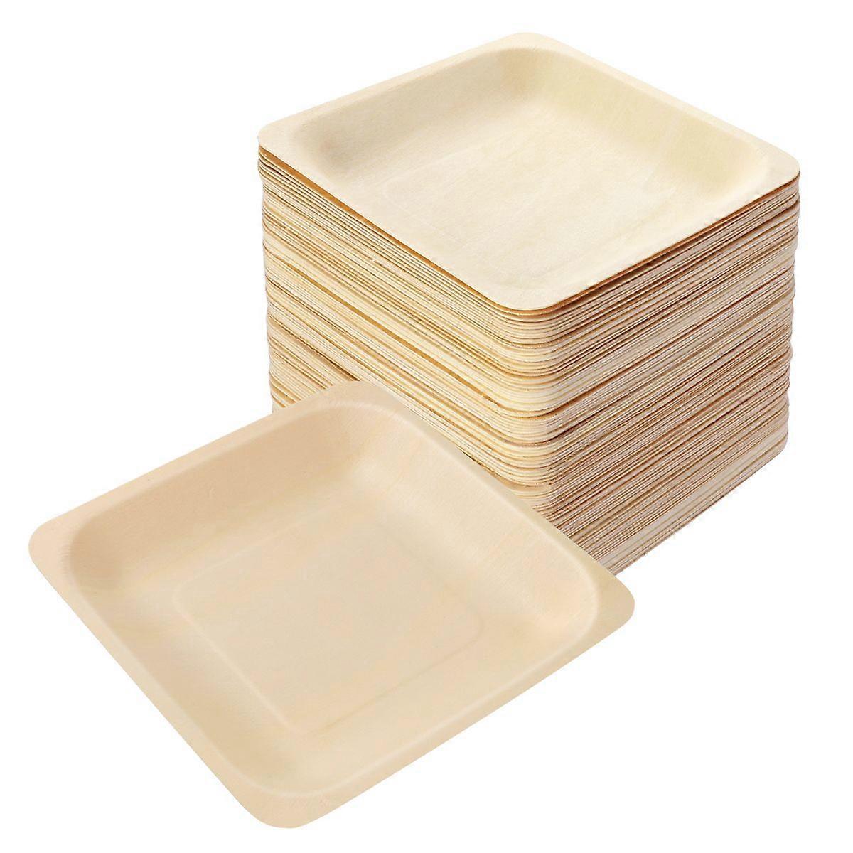 ROSENICE 100pcs Square Disposable Wooden Plate Party Plates Tableware for Wedding Restaurant Picnic Birthday 140x140mm