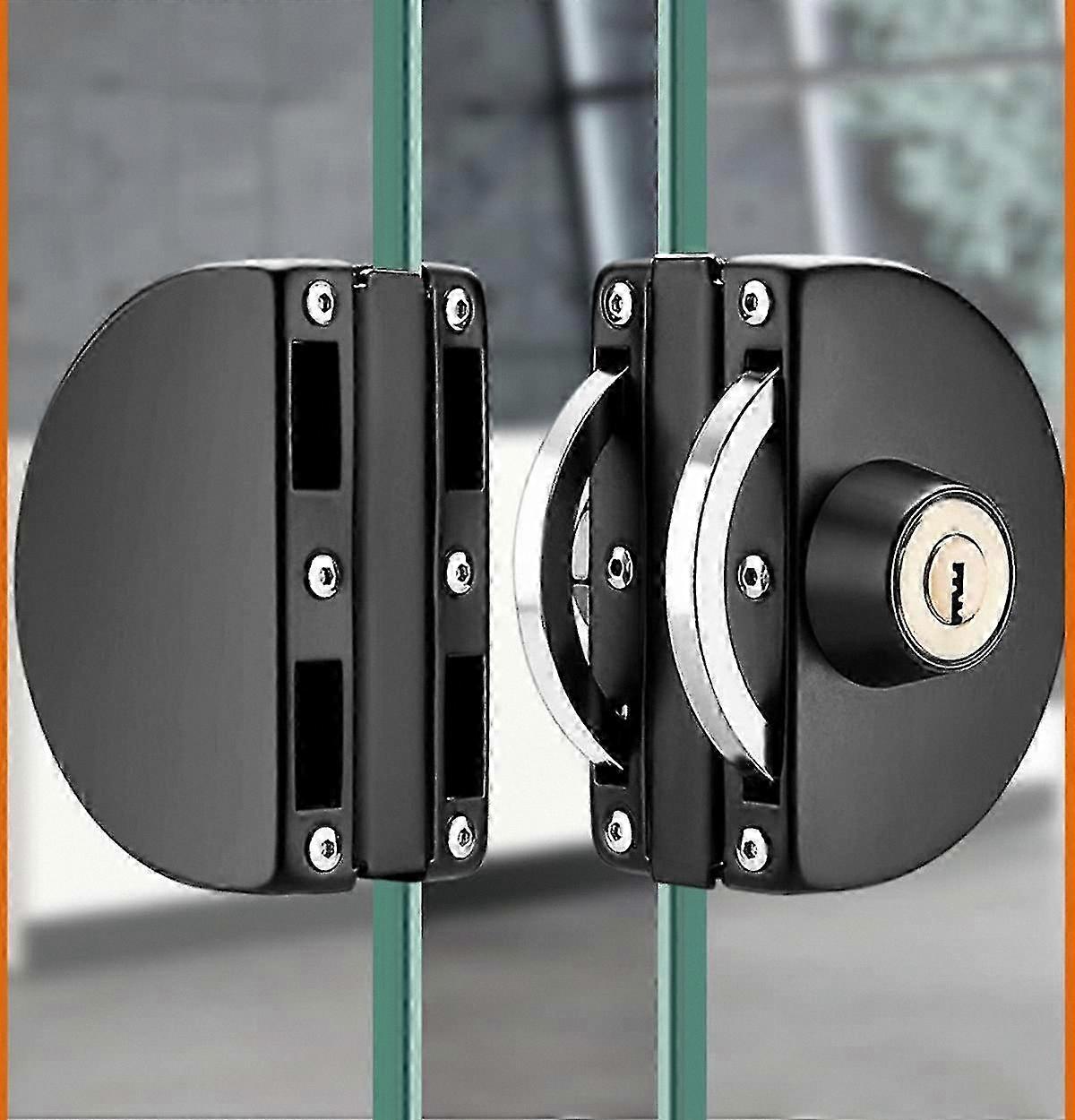 Stainless Steel Glass Door Lock for Double Sliding Doors, No Drilling Required, Central Lock in Black Finish