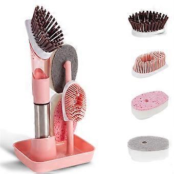 Soap Dispensing Dish Brush Set & 4 Replacement Heads Pink