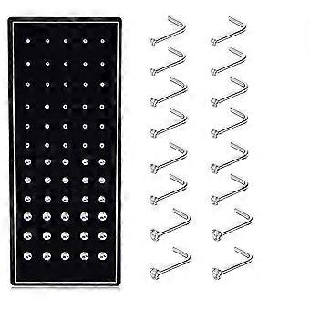 60 stk. allergivenlige næsestikker i rustfrit stål med cz, L-formede benstikker, skruepiercing, 20 g (1,5/2/2,5/3 mm), kompatibel med de fleste næsepiercinger