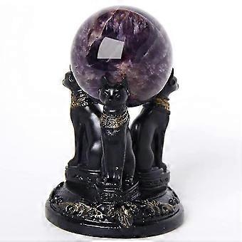 Egyptisk Bastet-figur krystalkugleholder, design med 3 katte og gulddetaljer, mytologi-tema dekoration – kompatibel med standard krystalkugler