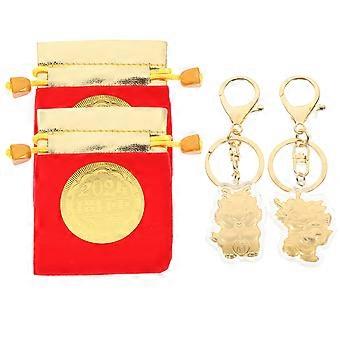 Decorative Keychain Dragon Modeling Key Chain Year of the Dragon Bag Accessory Gold Foil 2Set