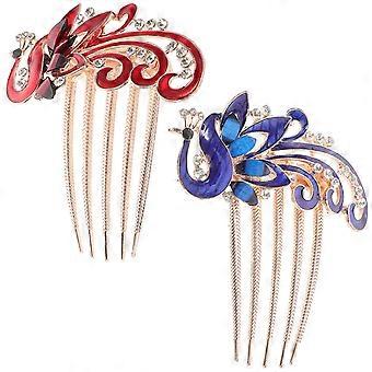 Fancy Hår Kamme Rhinsten Og Legering Påfugl Design Pandehår Management 2 stk Til Kvinder Hår Styling Særlige Lejligheder