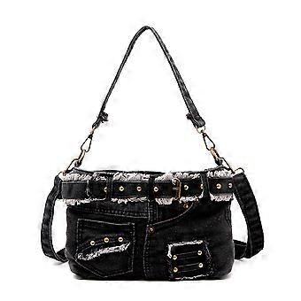 Kreative Jeans Denim Kvinder Patchwork Satchel Skuldertaske Håndtaske Lærredstaske