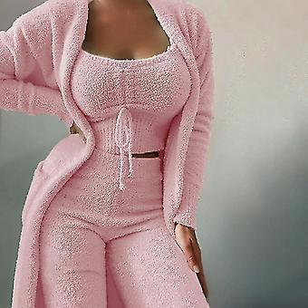 Damer Casual Crop Tank Tops Lounge Sæt Loungewear Langærmet Fuzzy 3 delt sweatsuit