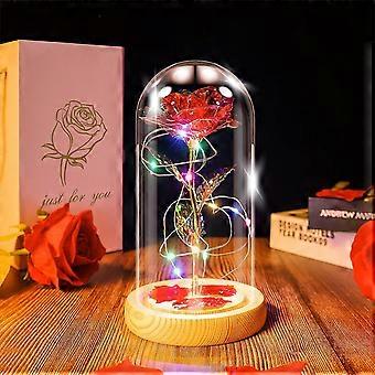 Rose i Glas Kuppel med Lys Blomst Med Lys Valentinsdag Gaver Til Kæreste, Kæreste