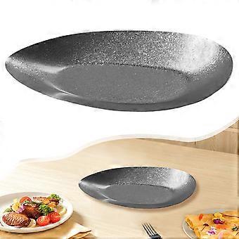 Stilfulde tallerkener med uregelmæssig form, lavet af 304 rustfrit stål med retrodesign, velegnede til servering af desserter og forretter og nemme at rengøre.
