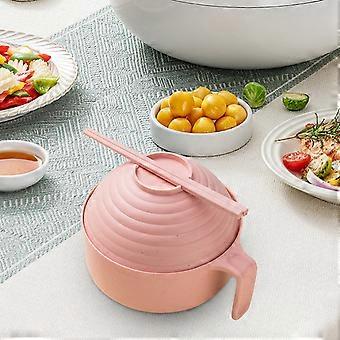 Stor nudelskål, mikroovnsramenskål med håndtag, låg, ske, spisepinde, bærbar ramenskål til hjemmekontor/kollegieværelse (Pinks)