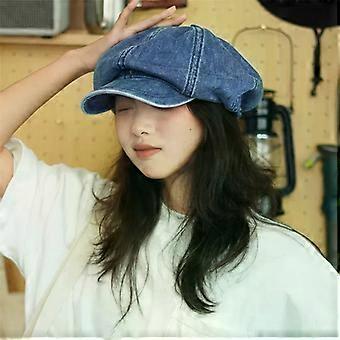 Damer Jeans Cowboy Beret Hat Piger Afslappet Unisex Vintage Denim Beret Kasket Monteret Sun Cabbie Flad kasket Gorras Mænd Mode