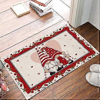 Valentinsdagsmåtte 40x60cm – Lavprofil, vaskbar, skridsikker, tæppe med kærlighedshjerte- og gnomeprint, kompatibel med indendørs/udendørs brug