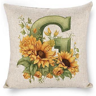 G Monogram Sunflower Pillow Cover, 18x18", Floral Farmhouse Decor, Compatible with Standard Insert